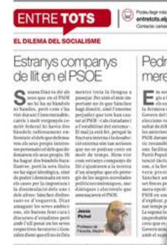 * Publicado en elperiodico.com Entre Todos. con el título Extraños compañeros de cama en el PSOE 02.10.2016